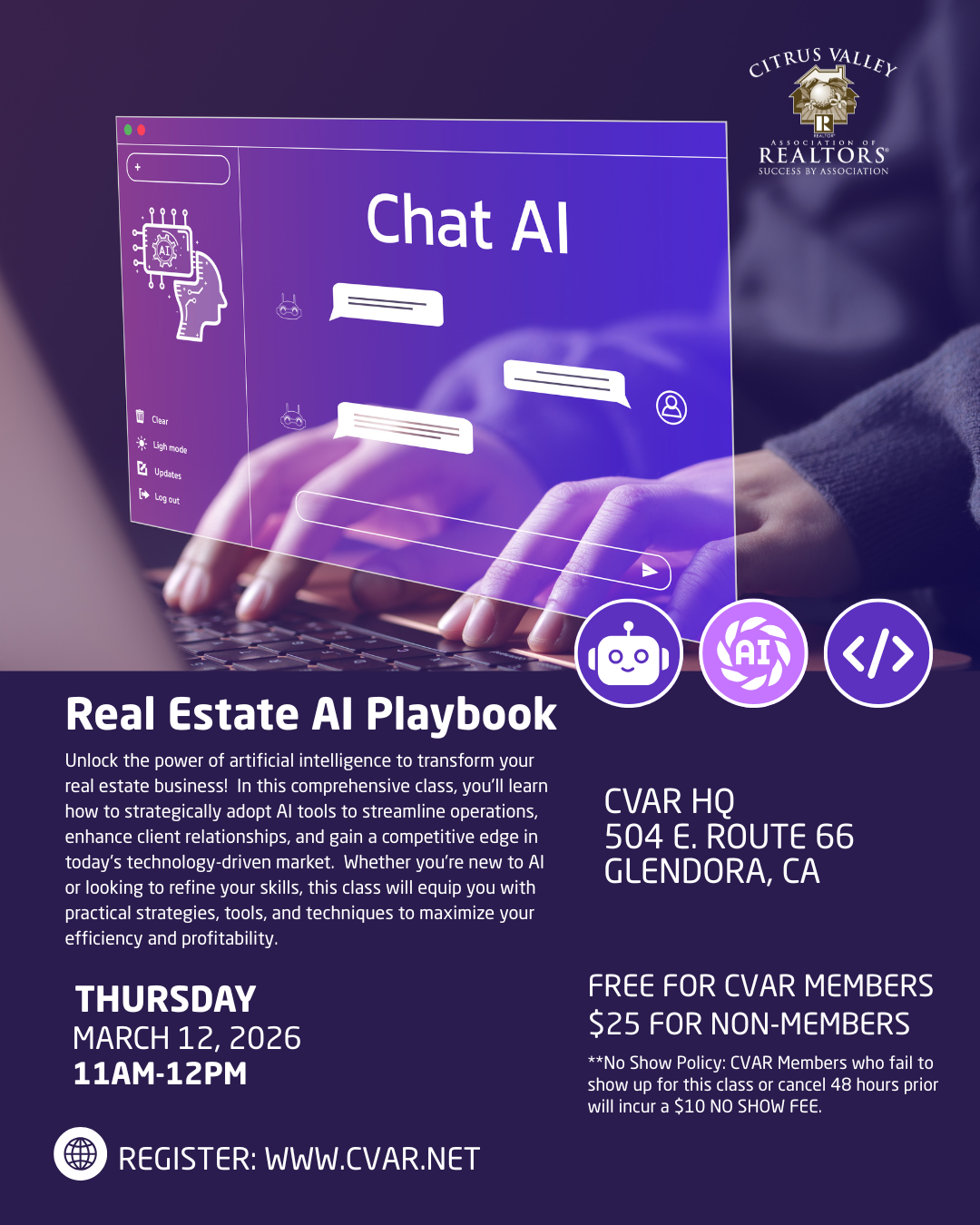 CVAR Rancho store closes at 12:30pm on Saturdays!